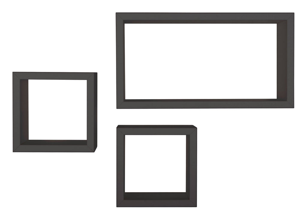 Ensemble de 3 étagères cubiques murales carrées et rectangulaires en panneaux de fibres Black Tribe
