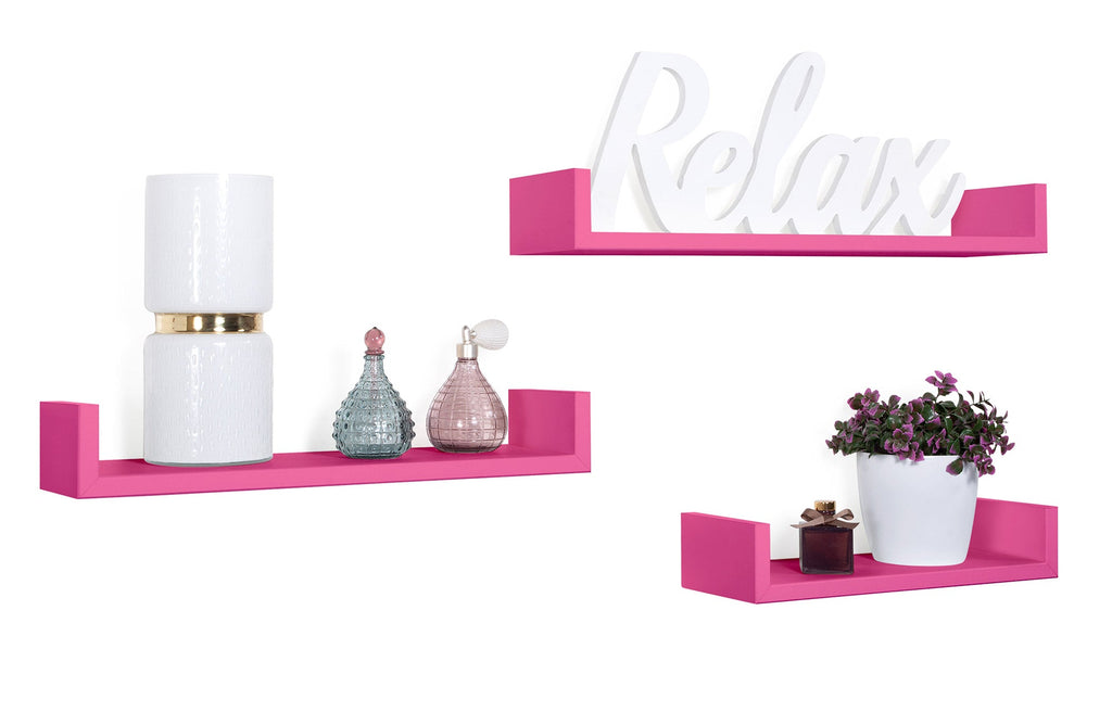 Lot de 3 Etagères Murales 60-50-40x15,5x8 cm en Fibre de Bois Magnétique Fuchsia