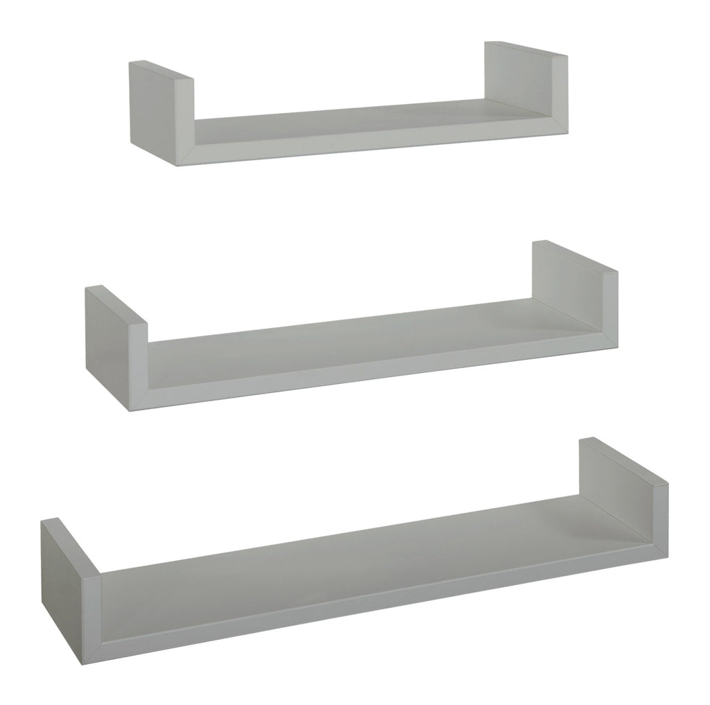 Lot de 3 étagères murales 60-50-40x15,5x8 cm en fibre de bois magnétique gris pierre