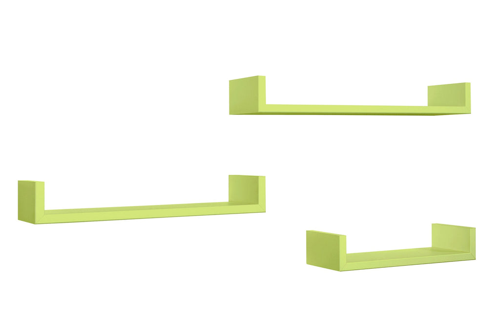 Lot de 3 étagères murales 60-50-40x15,5x8 cm en fibre de bois Magnet vert