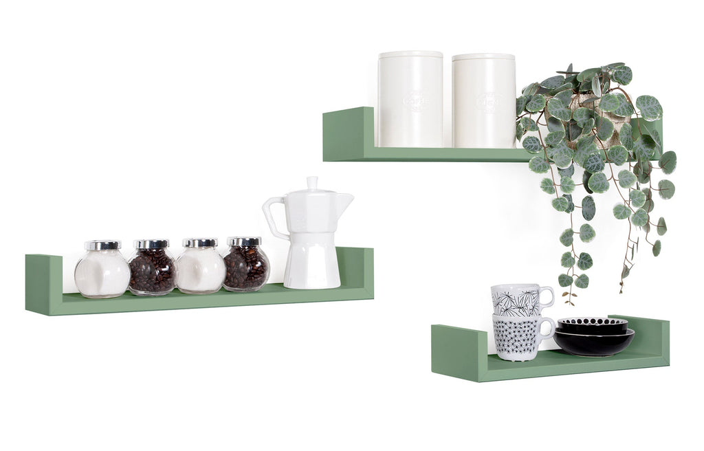 Lot de 3 Etagères Murales 60-50-40x15,5x8 cm en Fibre de Bois Magnétique Vert A. MARINA