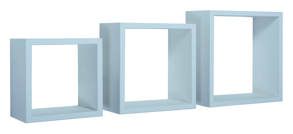 Set 3 Mensole da Parete Cubo in Fibra di Legno Incubo Blu Baltico