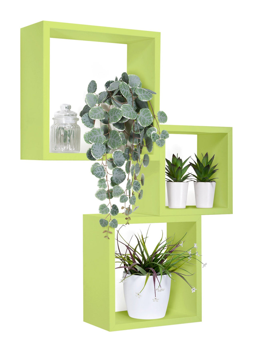 Set 3 Mensole da Parete Cubo in Fibra di Legno Incubo Verde