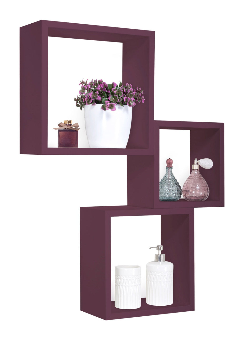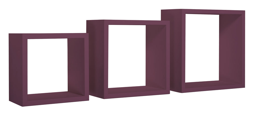 Set 3 Mensole da Parete Cubo in Fibra di Legno Incubo Viola Melanzana