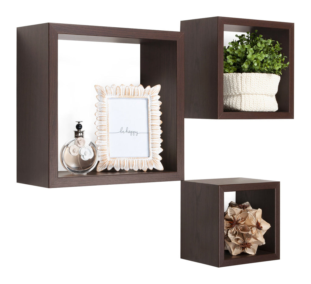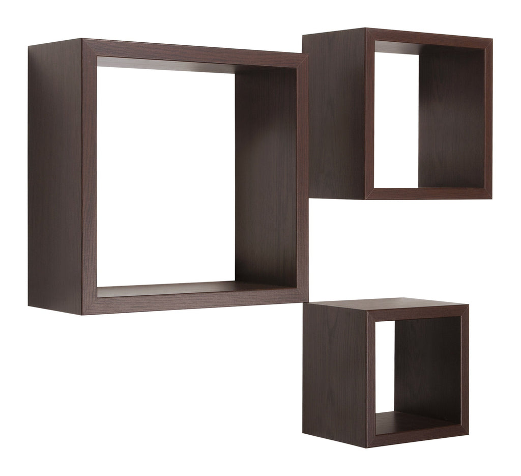Set 3 Mensole da Parete Cubo in Fibra di Legno Rubic Wengè