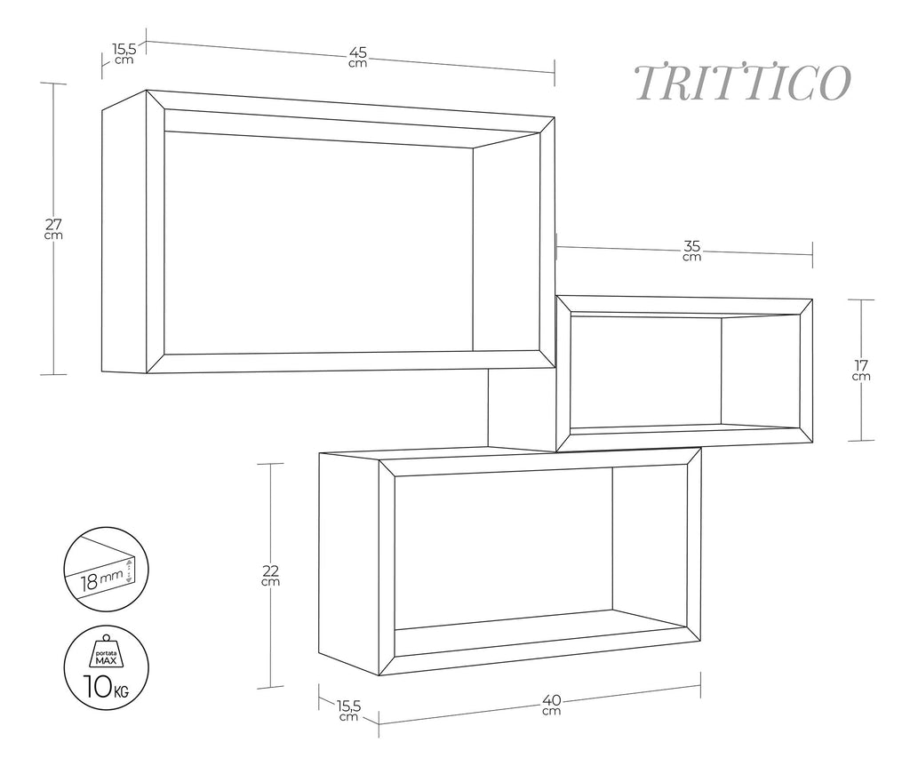- Dimensioni mensola grande (LxPxA): 45 x 15,5 x 27 cm