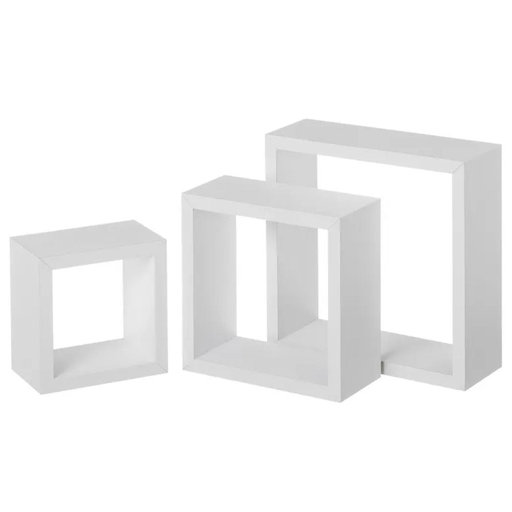 Set 3 Mensole Parete 30cm Moderne Design Cubo Mensola Scaffale Legno MDF Bianco