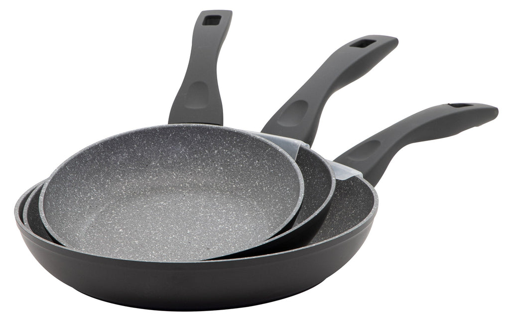 Set 3 Poêles 20-24-28 cm en Aluminium Forgé Anti-Adhésif Induction Collection Rocky Grey
