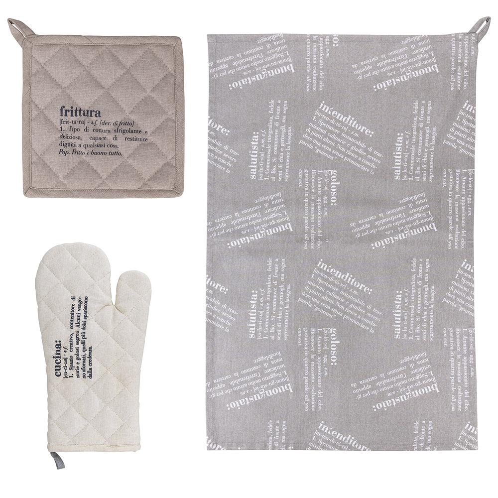 Ensemble 3 pièces manique de cuisine gant torchon en coton VdE Tivoli 1996 Victionary