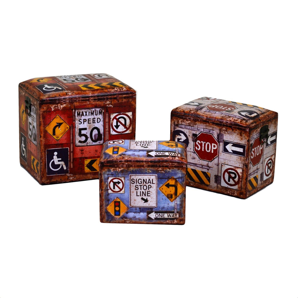 Lot de 3 Poufs Simili Cuir 42x32H38cm Panneaux Autoroutiers