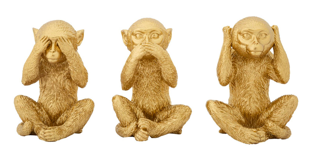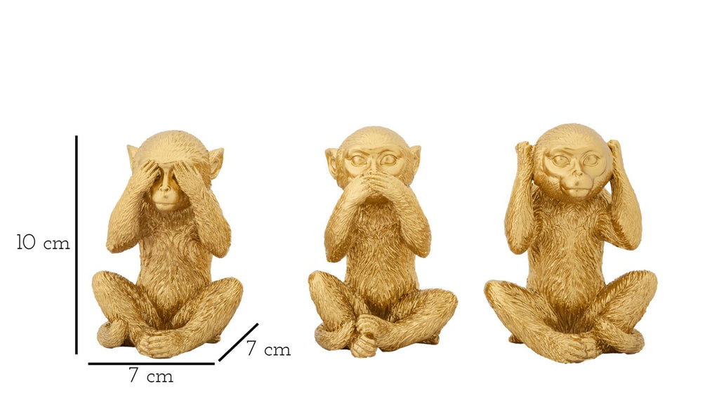 - Decorazioni: set di 3 scimmie in poliresina, elegantemente dorate e dall'aura misteriosa