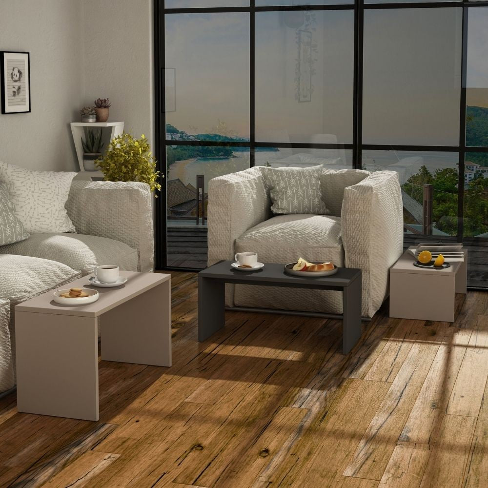 Lot de 3 tables basses Kanta gris tourterelle anthracite