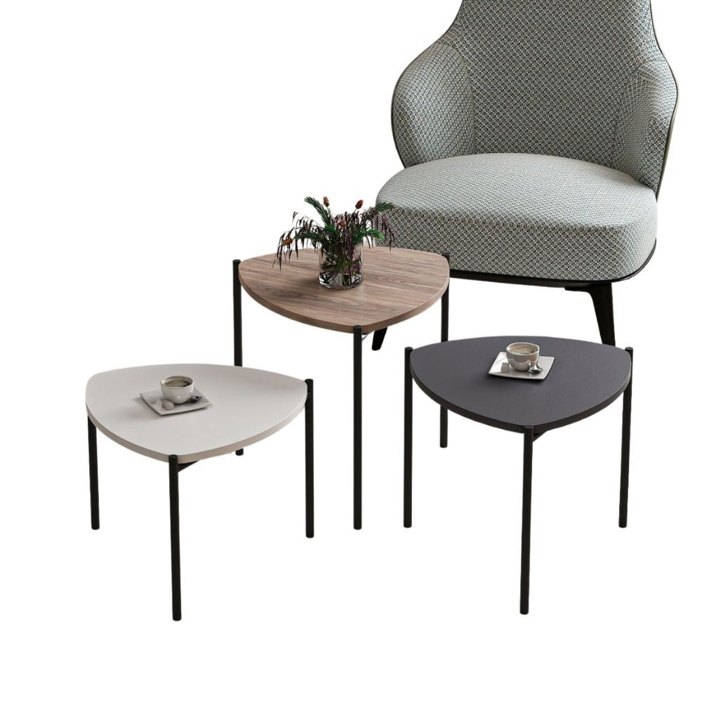 Trio de tables basses en noyer blanc anthracite Lenny.