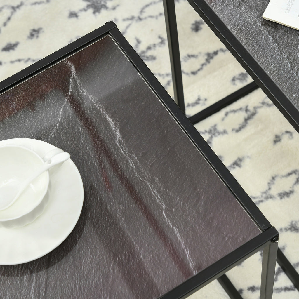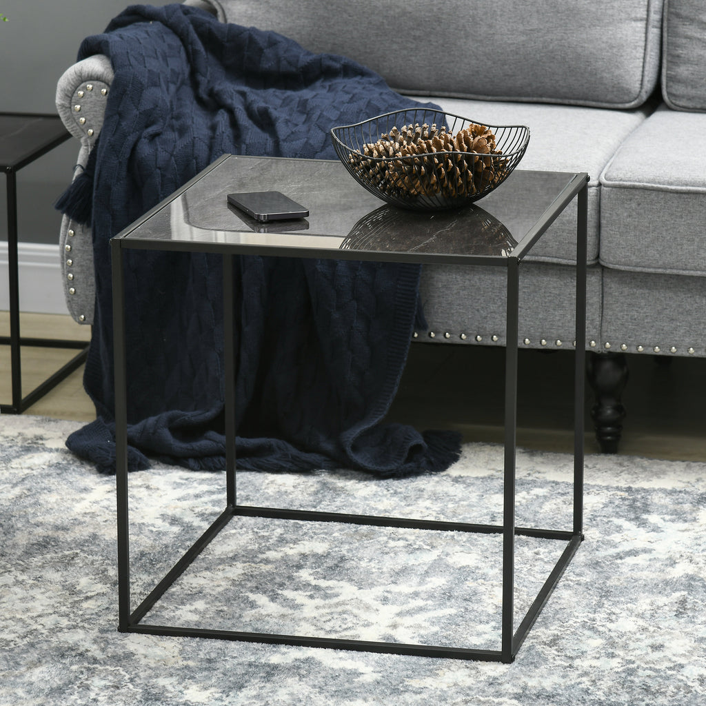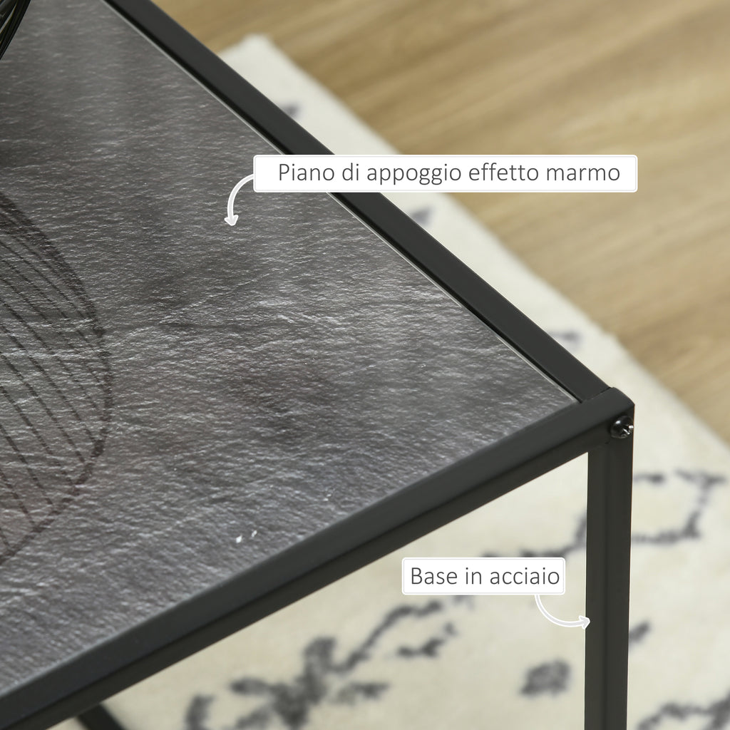 Set 3 Tavolini Quadrati Impilabili in Acciaio e Vetro Temperato Nero e Effetto Marmo
