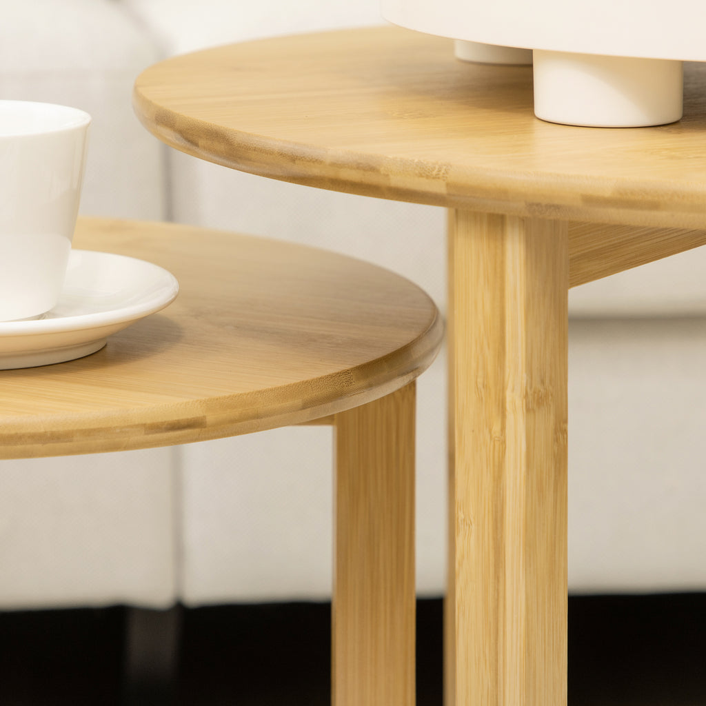 Set 3 tavolini Soggiorno Impilabili in Bambù Naturale