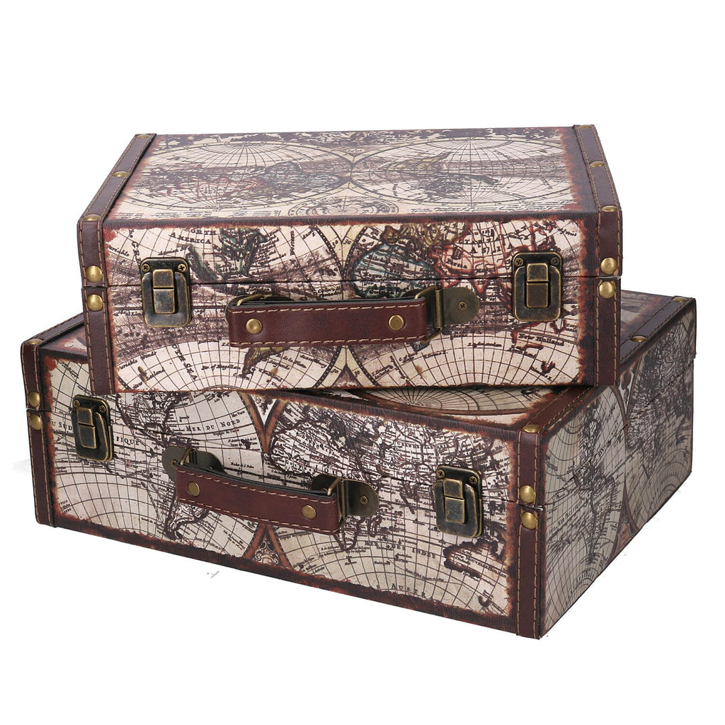 Set de 3 Valises Rectangulaires Mappemonde en Similicuir