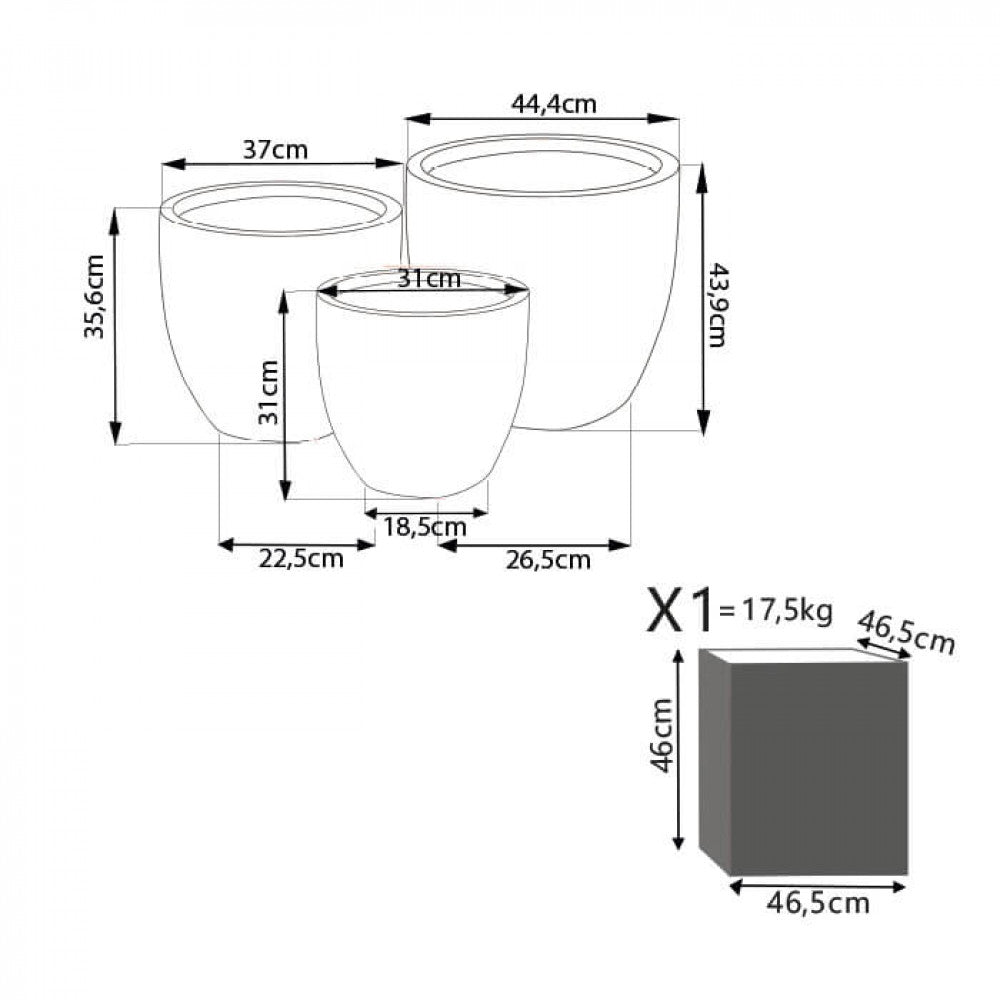 Set de 3 Vases Mimosa en Fibre d'Argile Grise