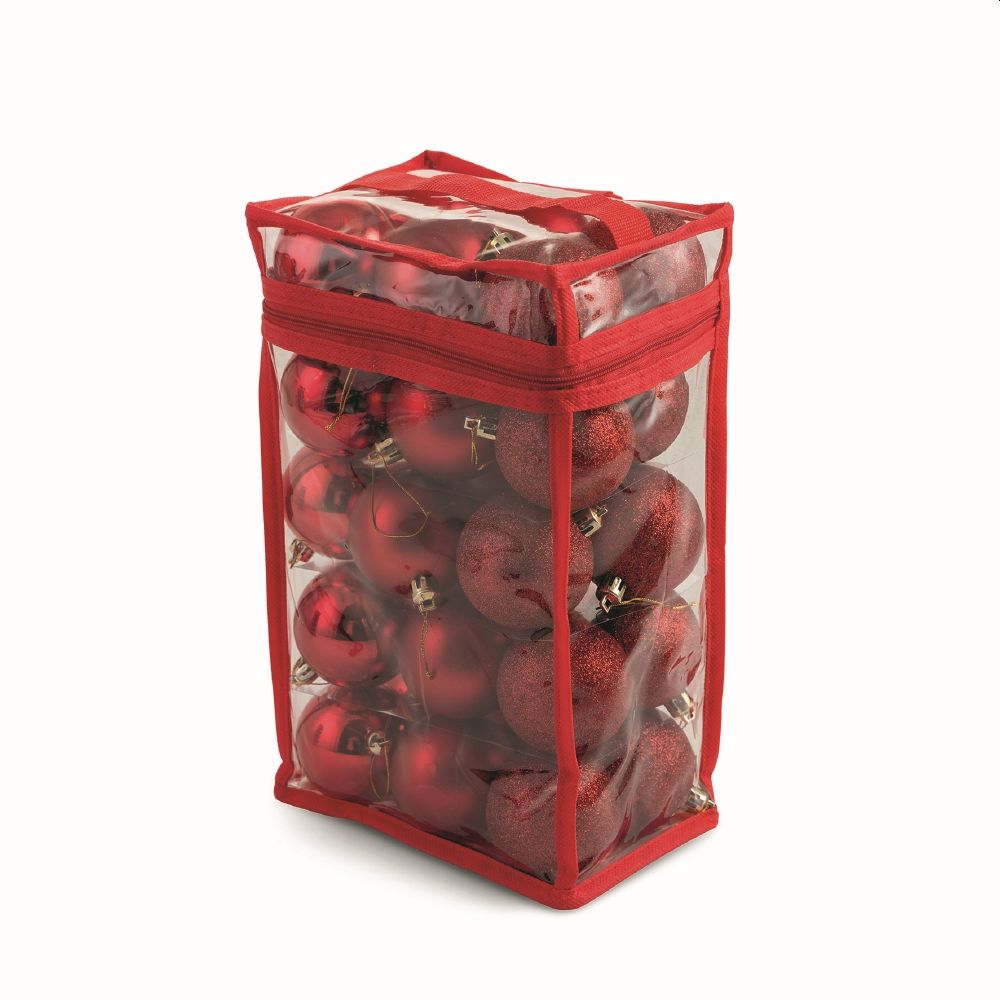 Lot de 30 boules de Noël en plastique Ø6 cm avec sac rouge