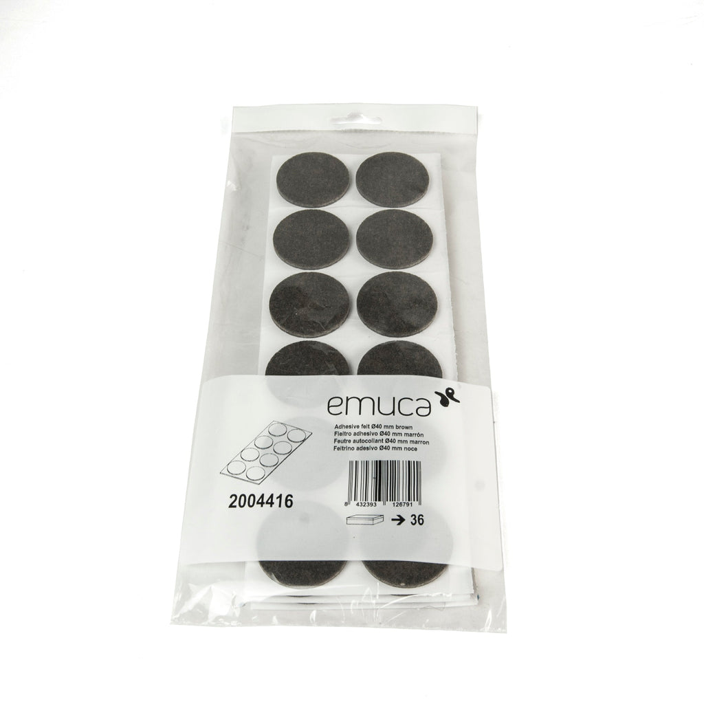 Lot de 360 patins en feutre adhésif Emuca marron pour pieds de table et chaises Ø4 cm