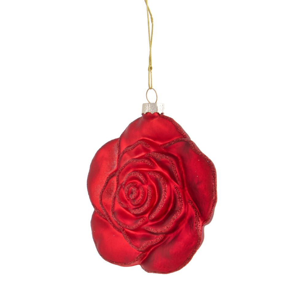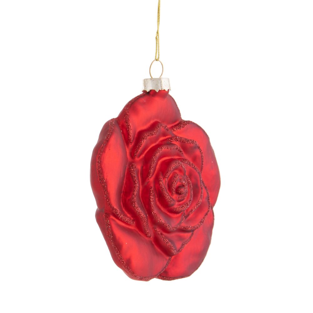 - Ornamento a forma di rosa rossa, elegante e lussuoso.