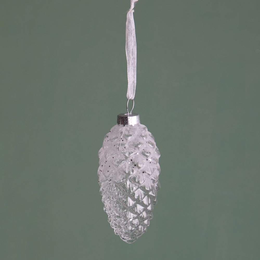 - Ornamento di pigne in vetro trasparente di alta qualità.