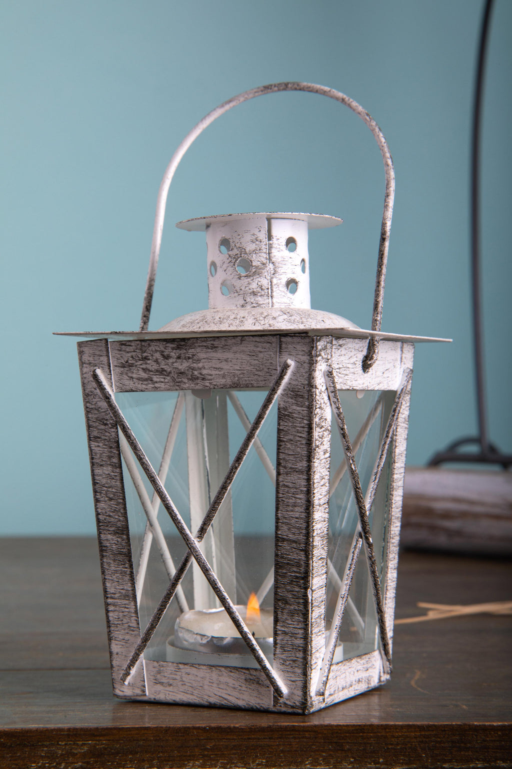 Lanterna Quadrata In Metallo. Altezza 15 Cm