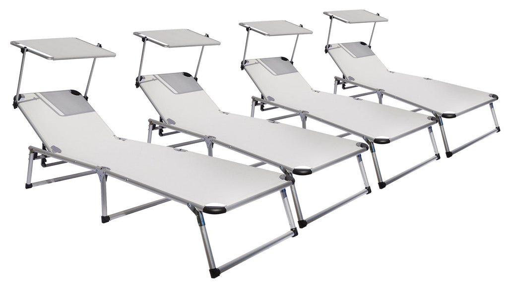 Lot de 4 bains de soleil de jardin pliants 193x59x30 cm en aluminium et textilène ivoire