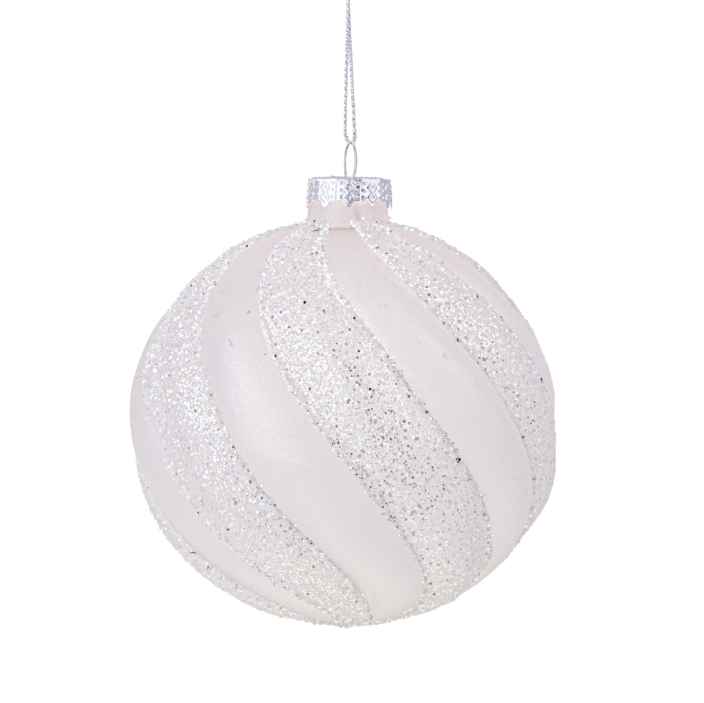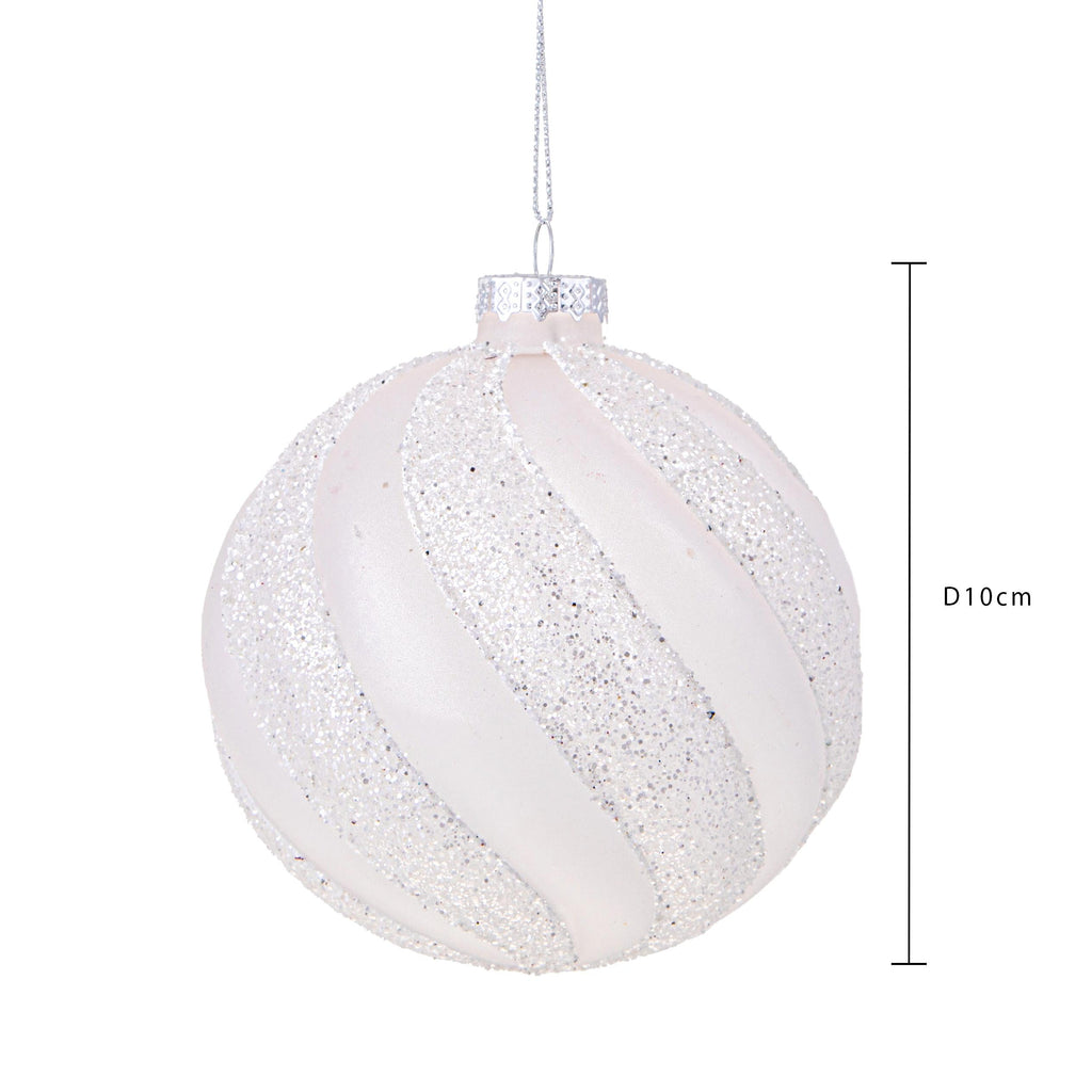 Lot de 4 Boules de Sapin de Noël à Paillettes Ø10 cm Blanc/Paillettes