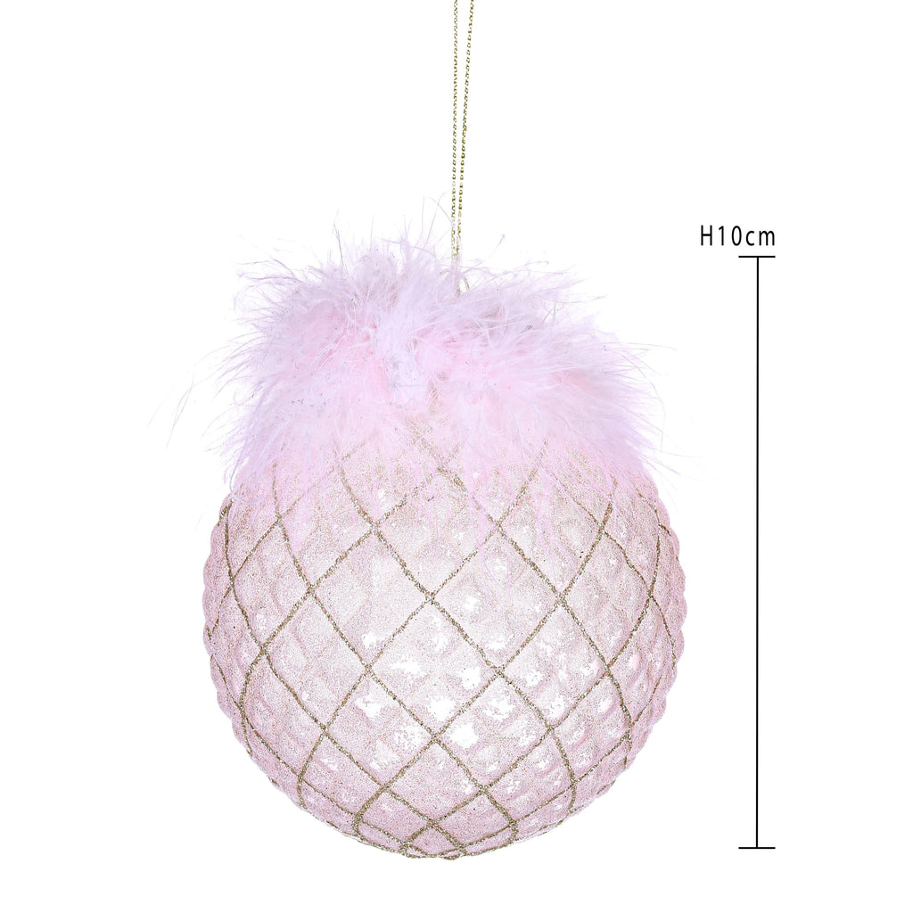 Set de 4 Boules Déco pour Sapin de Noël avec Plumes Ø10 cm Rose/Champagne
