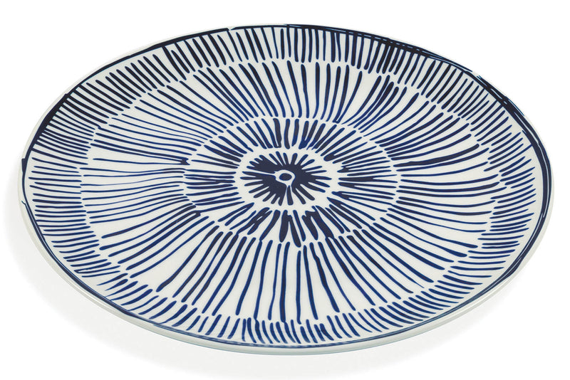 Ensemble de 4 assiettes de service en porcelaine sous glaçure blanche et rayures bleues Villa d'Este Home Tivoli 1996 Masai