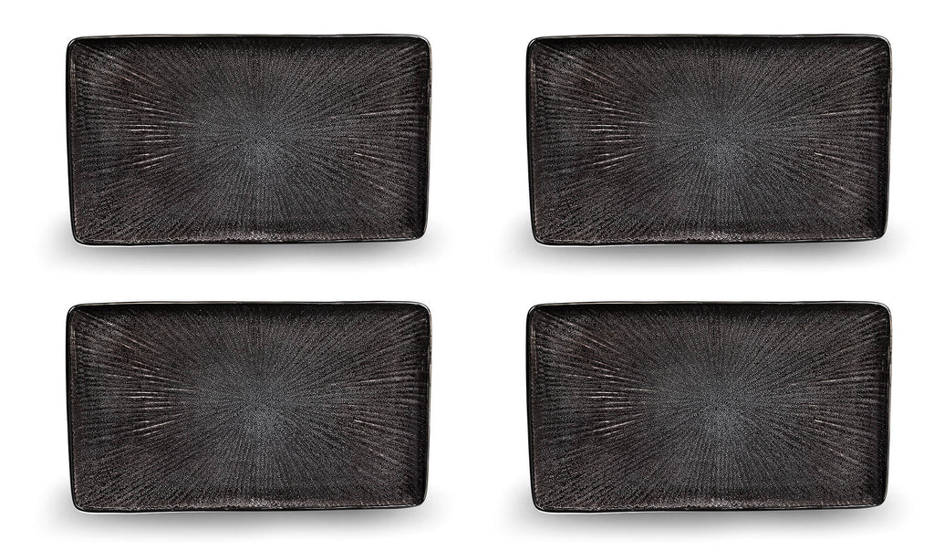 Set 4 Assiettes Rectangulaires 30x18x2,5 cm en Grès Kaleidos Sirius Neri