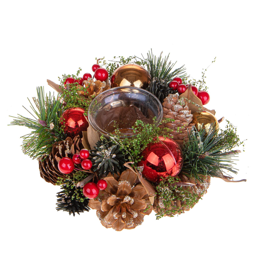 Set 4 Bougeoirs Sphères Décoratives et Baies Ø15 cm Rouge
