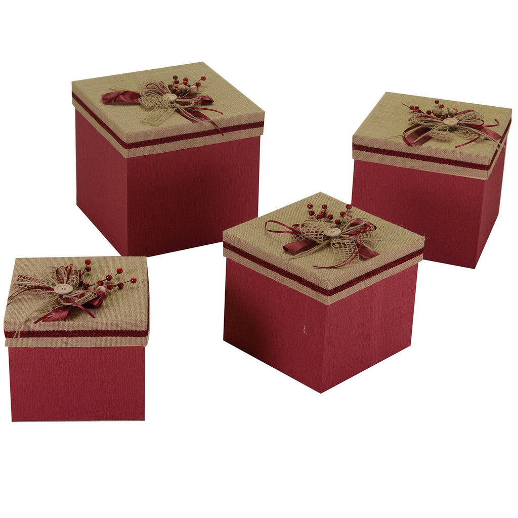 Lot de 4 boîtes en carton et tissu avec nœud et baies carrées