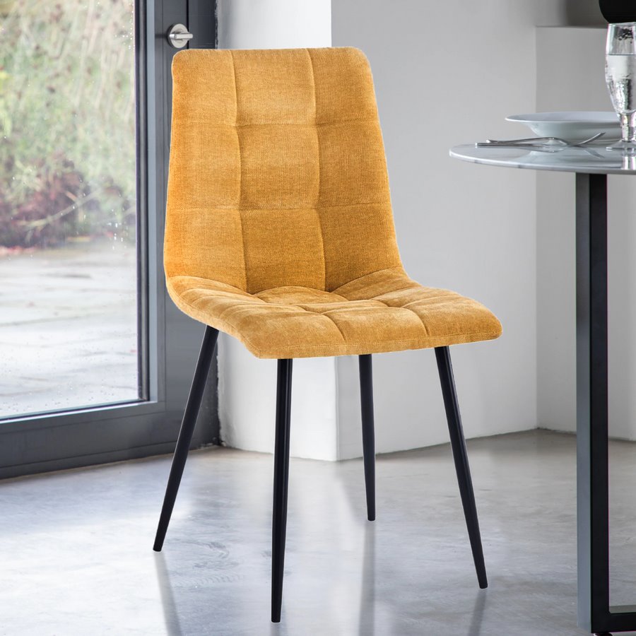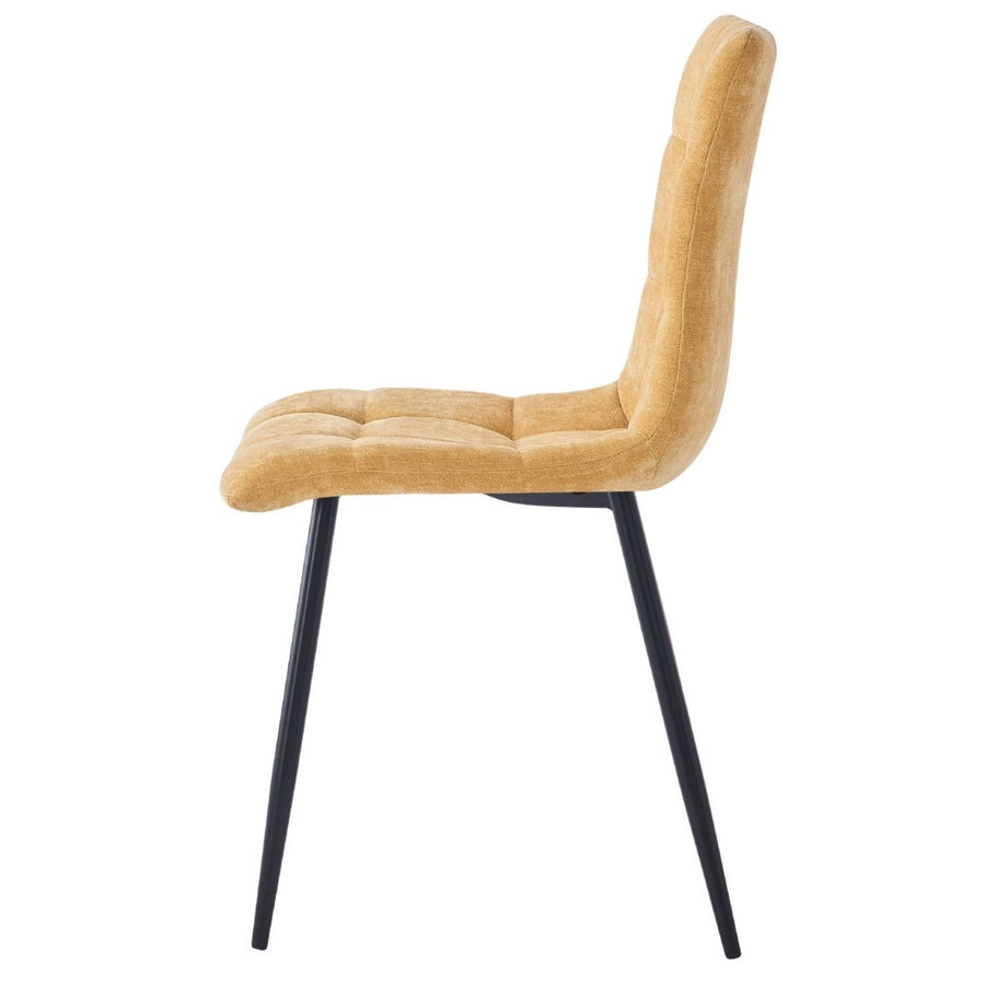 Sei in cerca di un set da 4 sedie dal colore vivace? La sedia Chris in tessuto giallo è la scelta ideale! Le gambe in metallo nero sono state scelte per dare un tocco di stile e funzionalità alla sedia. Sono un'ottima soluzione d'arredo per il tuo salotto o per la tua sala da pranzo, grazie alla doppia imbottitura in tessuto trapuntato, su seduta e schienale, donando così comfort ed eleganza.