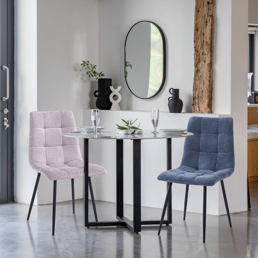 Il set da 4 sedie da cucina Chris, sono la soluzione ideale per il tuo ambiente. Grazie al tessuto imbottito e alla struttura ed i piedi in metallo, dal design minimal, verniciati di nero, rendono questa sedia da salotto la scelta ideale. Grazie alle misure della sedia di 42x44x89 cm sono facilmente adattabili a ogni tavolo da pranzo.