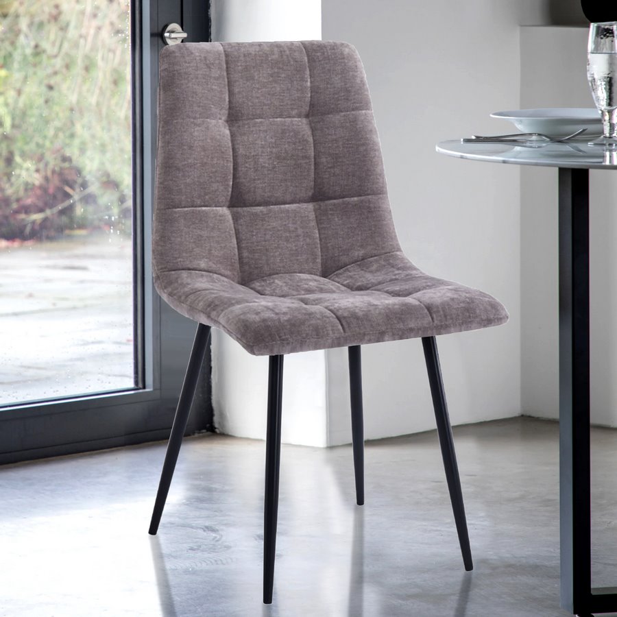 Questo pack da 4 sedie in tessuto marrone, con piedi in metallo verniciati di nero, sono la novità del catalogo WeHome. Le sedie design Chris, in questa versione marrone, sono la scelta giusta se sei in cerca di eleganti ma funzionali sedie per la tua cucina o per il tuo salotto. La comoda seduta imbottita e trapuntata rendono queste sedie la scelta giusta per ogni ambiente.