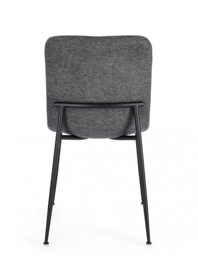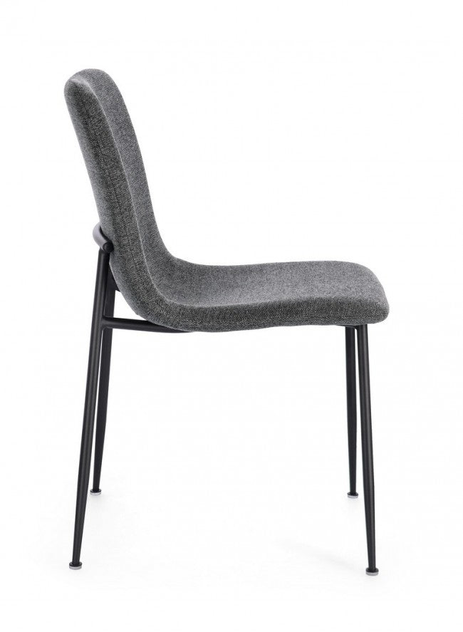 Structure en contreplaqué, pieds en acier thermolaqué, rembourrage en mousse de polyuréthane, revêtement en polyester et nylon. Pieds à assembler.Lot de 4 chaises Rinas 44x56x81 cm en tissu gris foncé