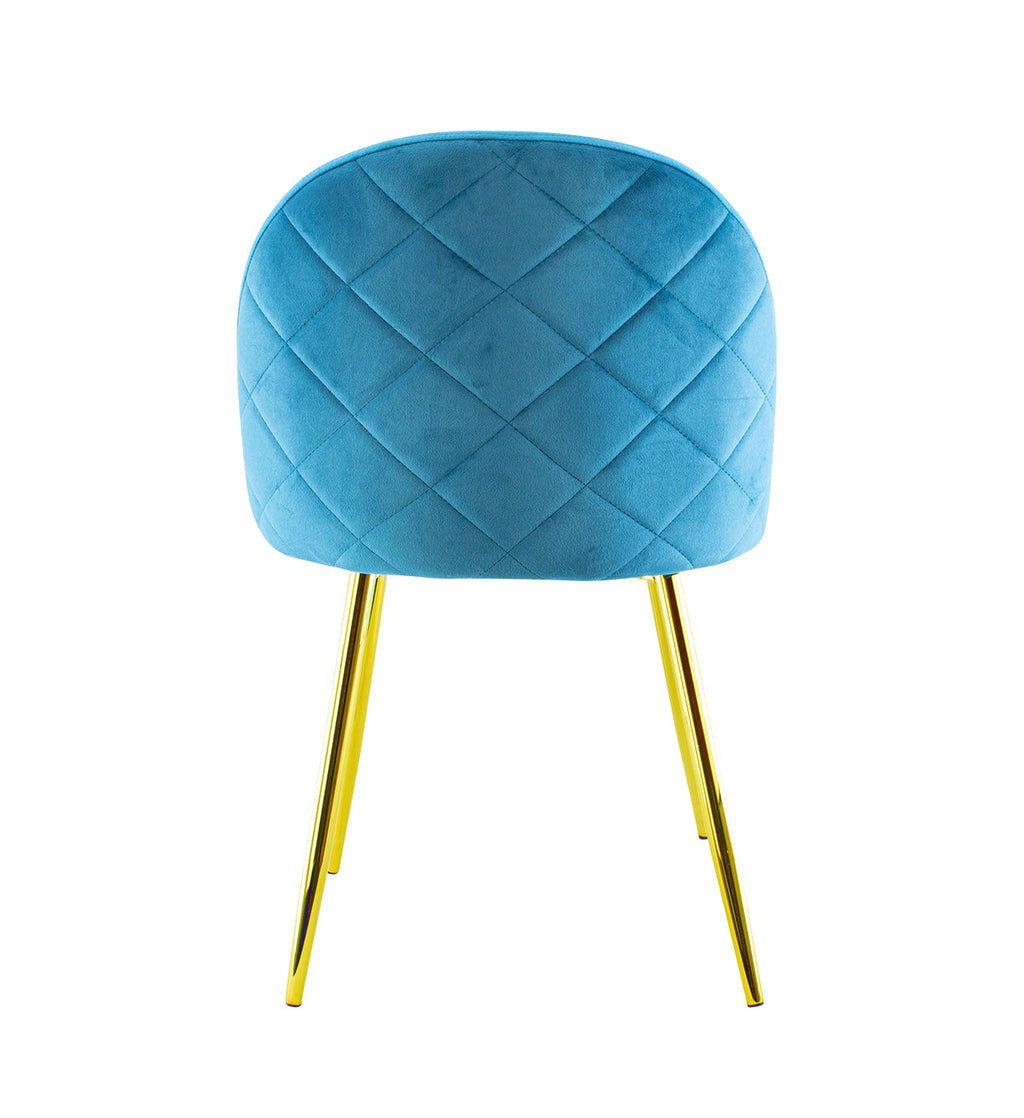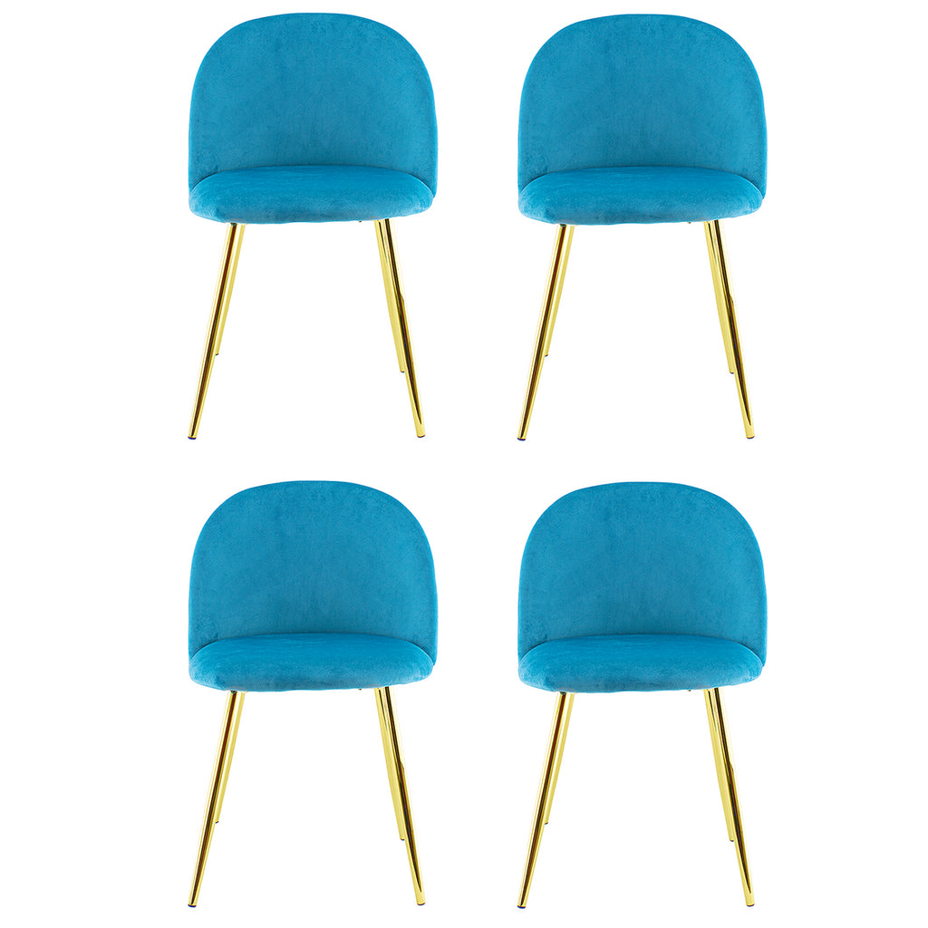 Lot de 4 Chaises 50x45x80 cm en Tissu Velours Pieds Or Bleu