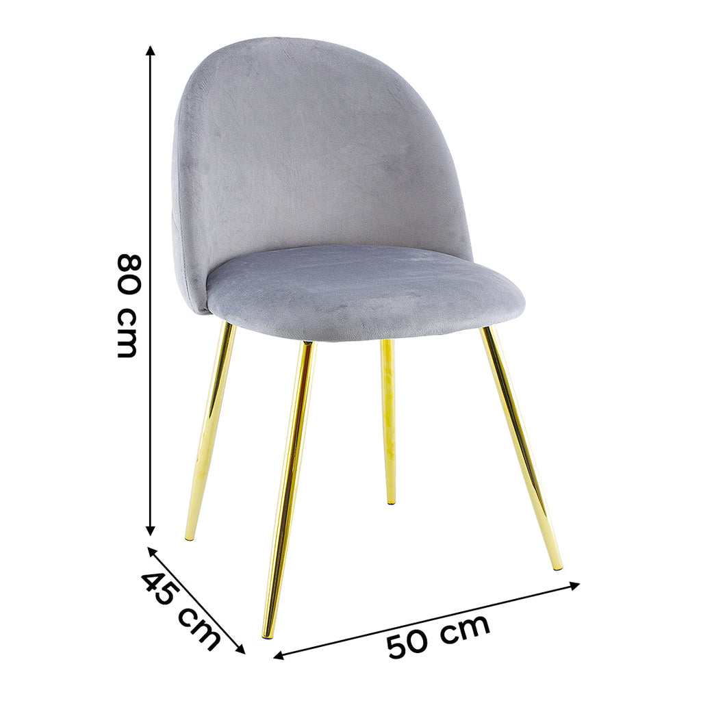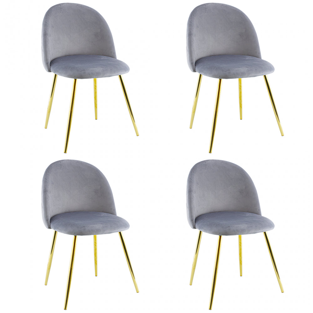 Lot de 4 Chaises 50x45x80 cm en Tissu Velours Pieds Gris Or