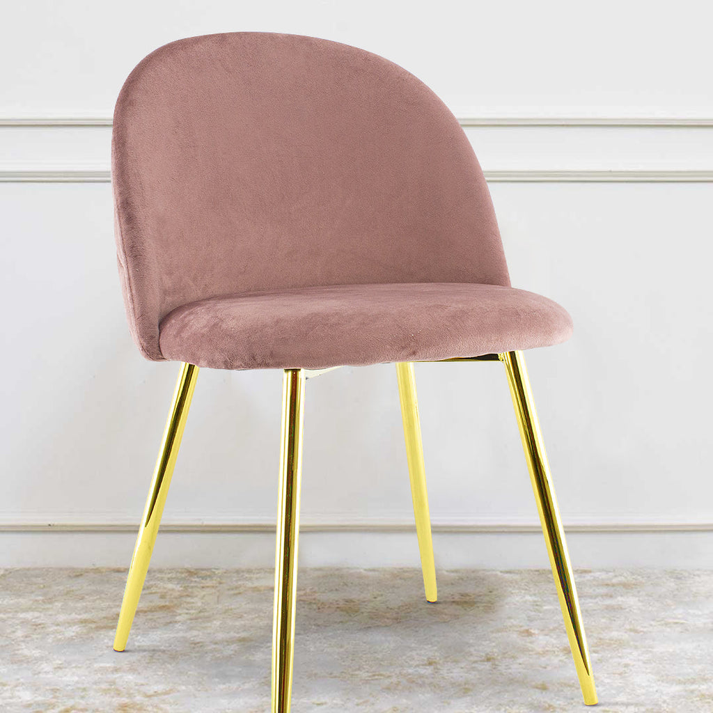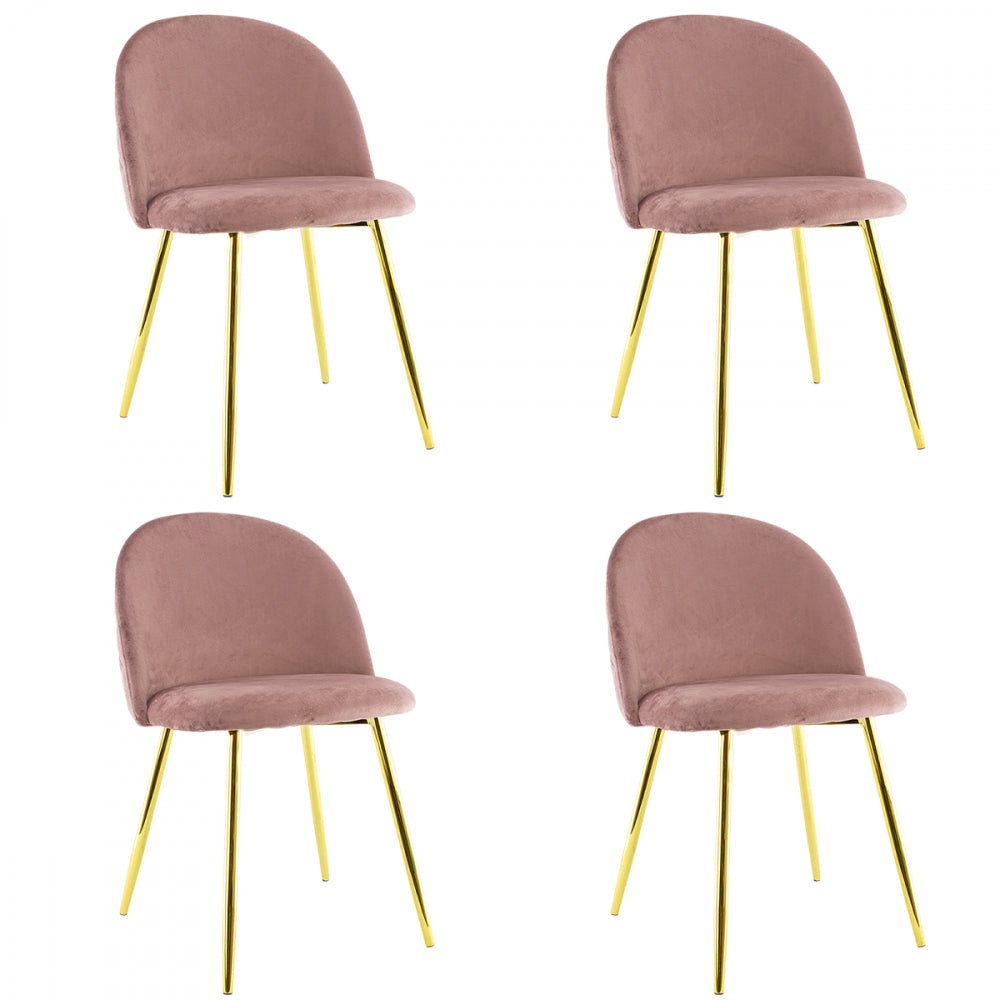Lot de 4 Chaises 50x45x80 cm en Tissu Velours avec Pieds Or Rose Vieilli