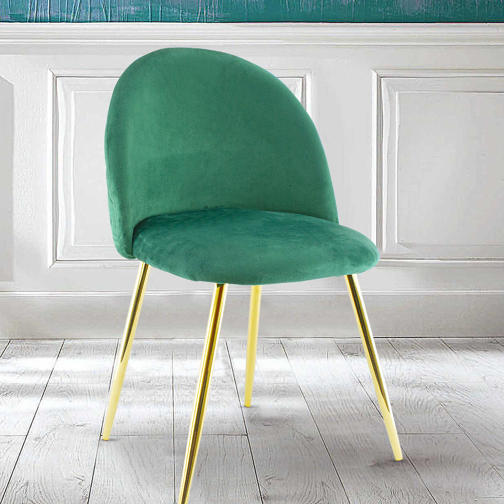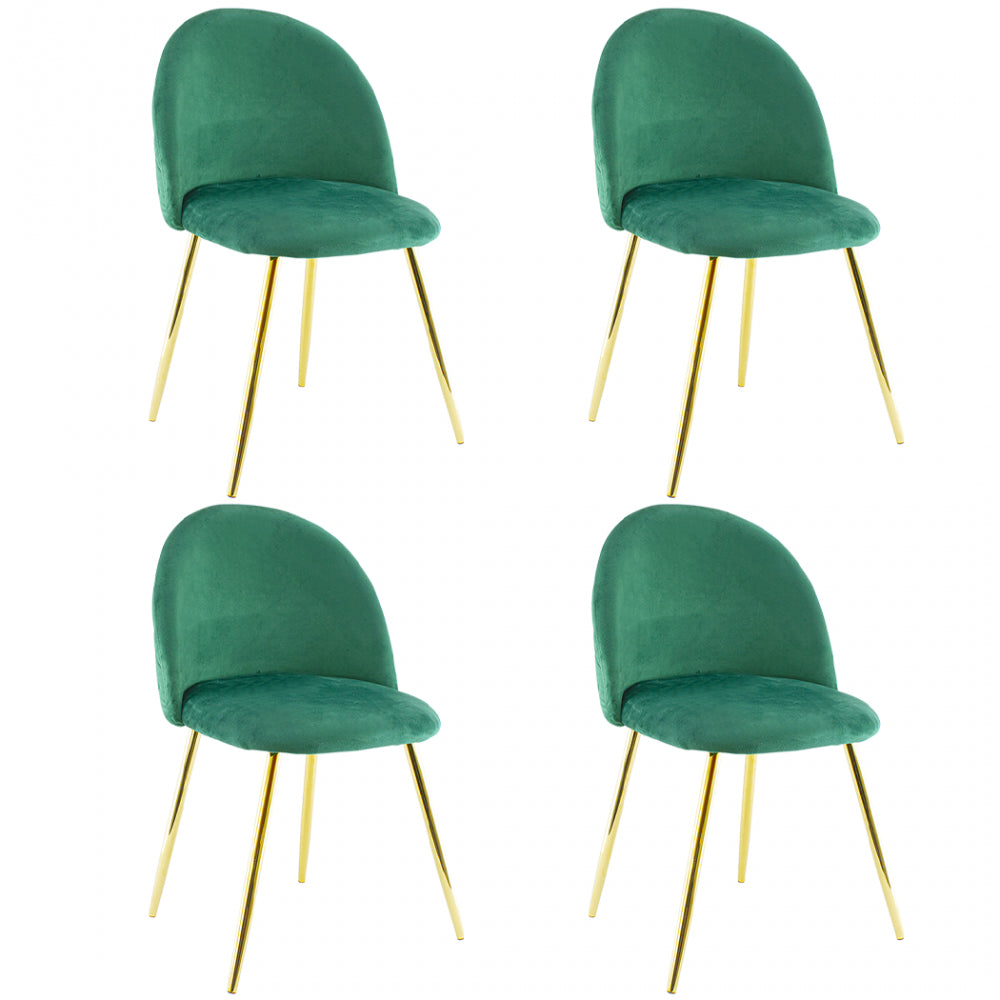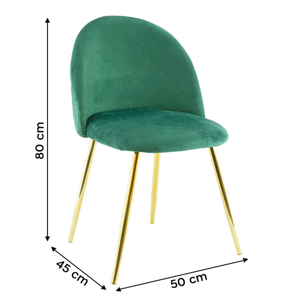 Lot de 4 Chaises 50x45x80 cm en Tissu Velours Pieds Vert Or