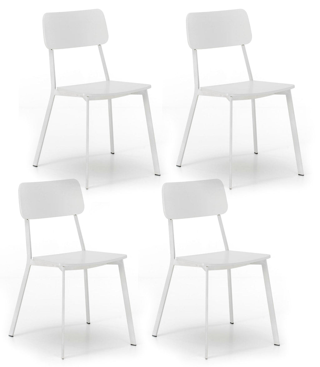 Set 4 Sedie 51x51,5xH82 cm in Legno e Metallo Woody Bianco
