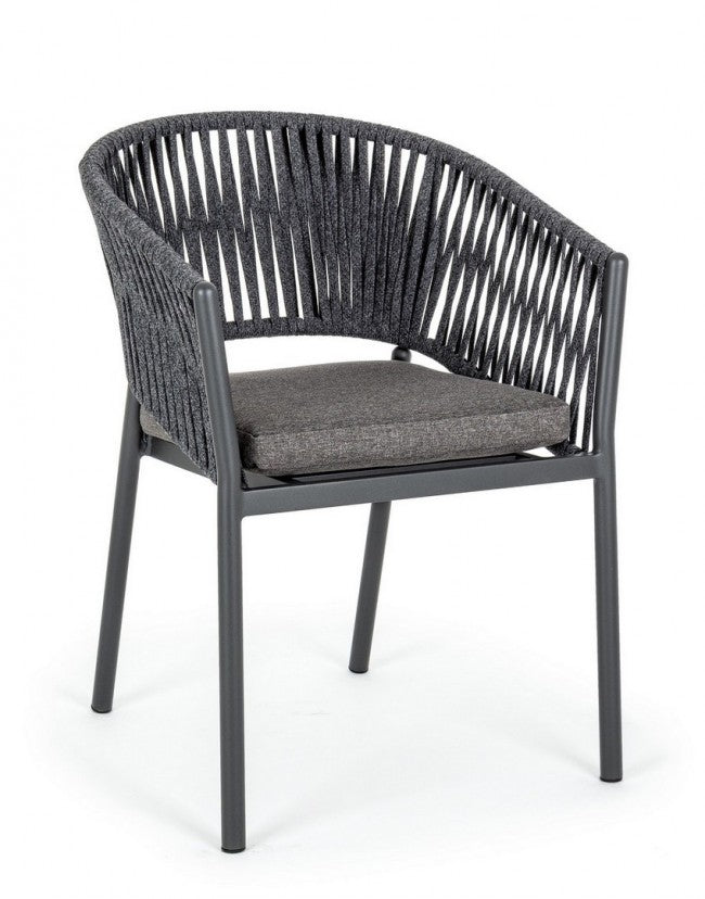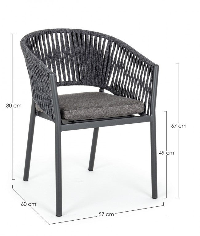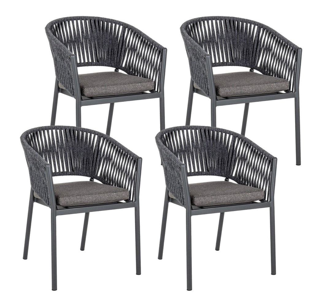 Set 4 Sedie 57x60x80h cm con Braccioli e Cuscini Florencia Antracite
