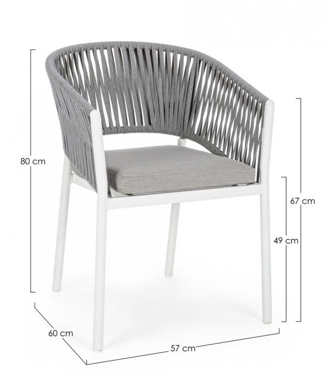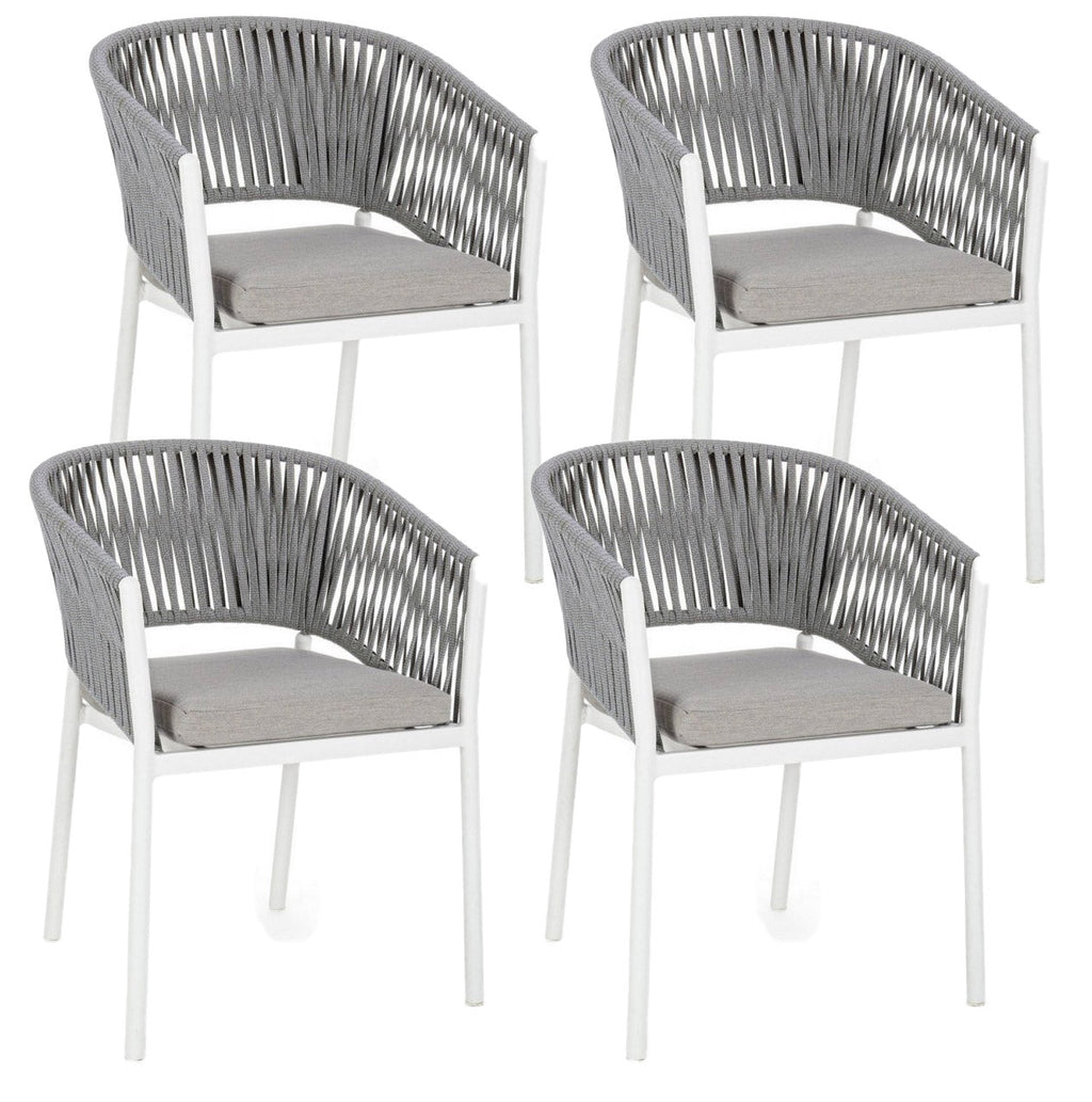 Set 4 Sedie 57x60x80h cm con Braccioli e Cuscini Florencia Bianco