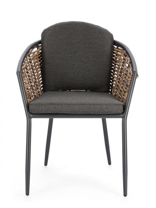 Set 4 Sedie 63x63x79,5h cm con Braccioli e Cuscini Maribela Antracite