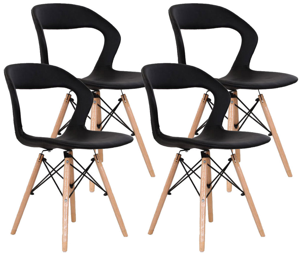 Lot de 4 Chaises 78x46x46 cm en Simili Cuir Intérieur Noir