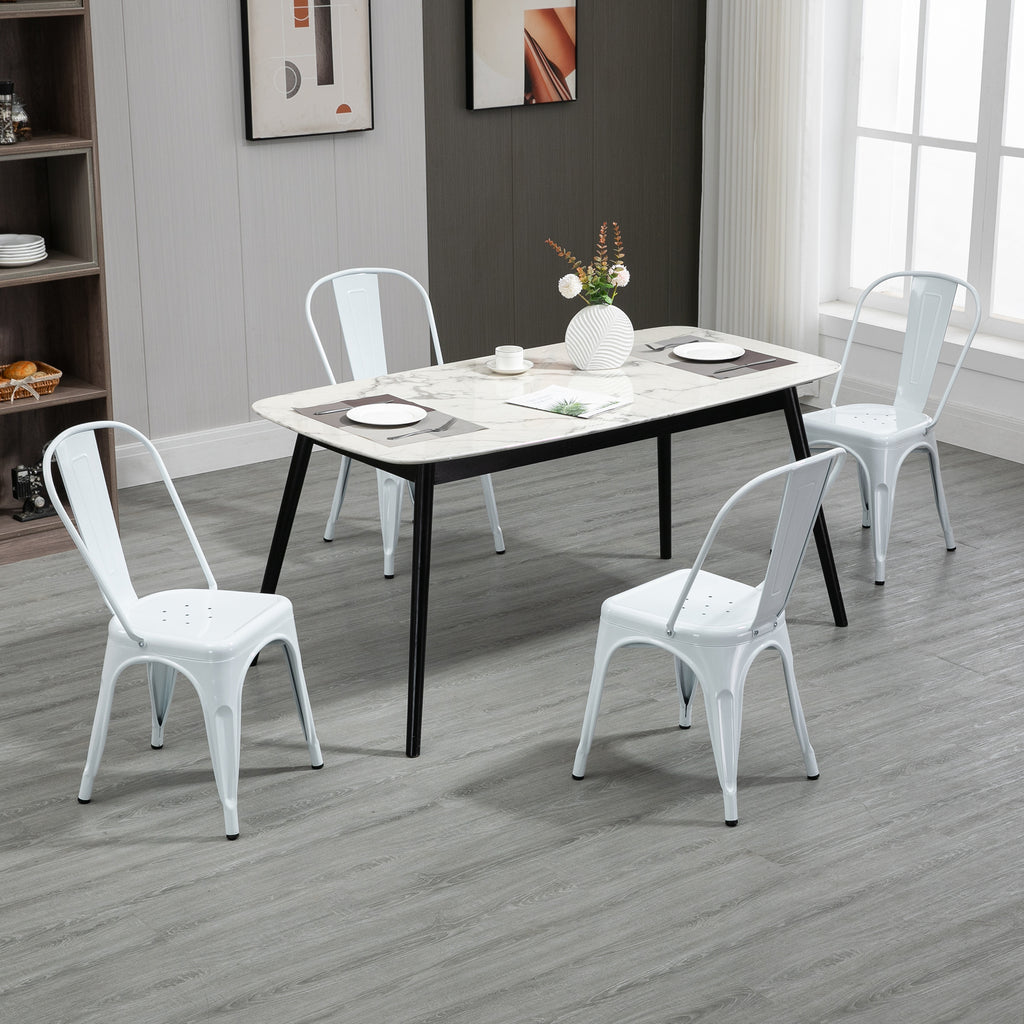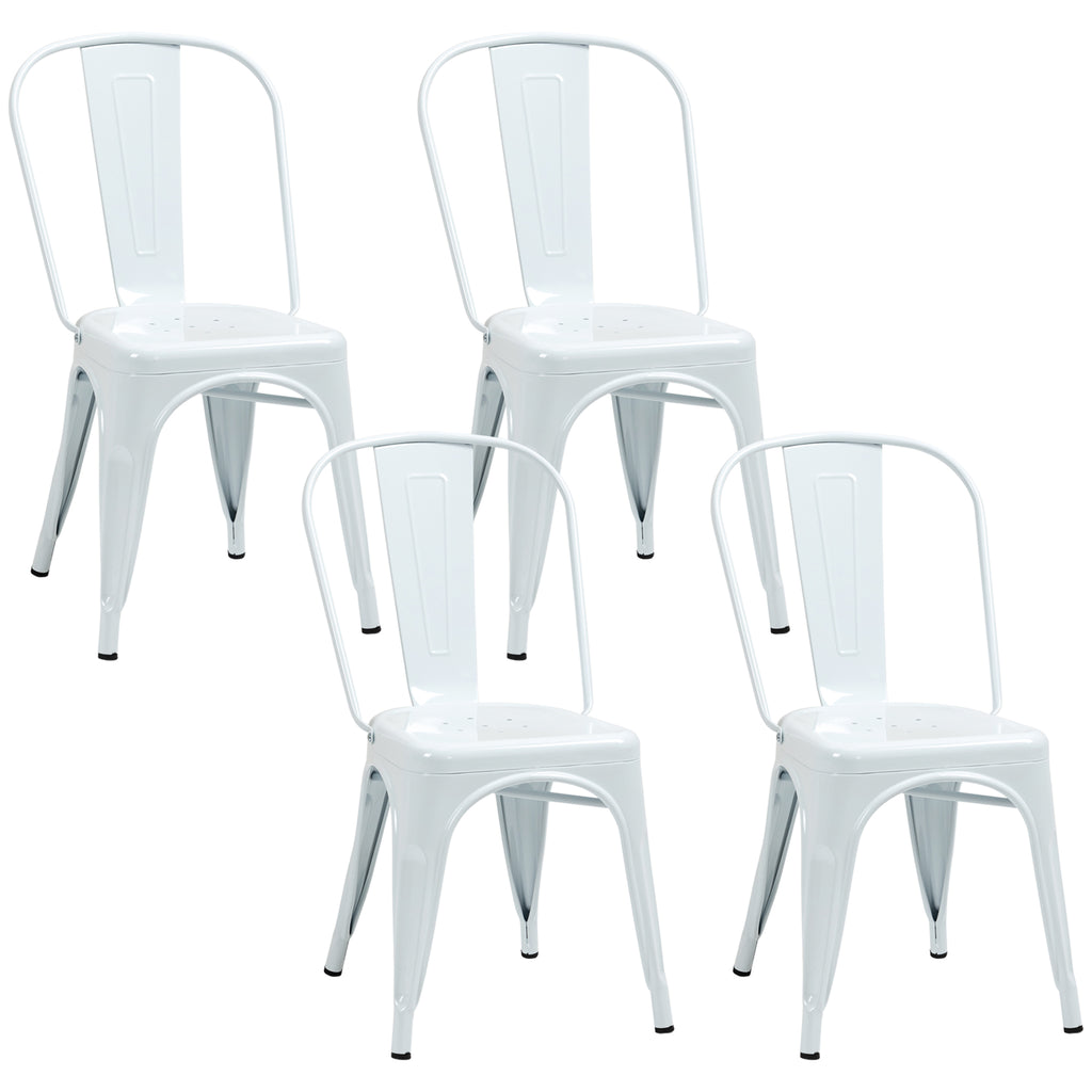 Lot de 4 chaises de cuisine empilables 53x45x85 cm en acier blanc
