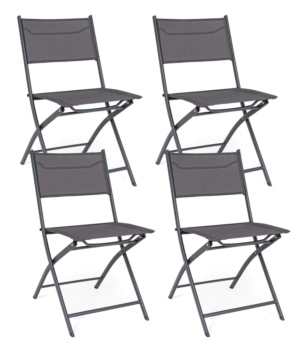 Lot de 4 Chaises de Jardin 46x58x80 cm en Acier et Textilène Martinez Anthracite