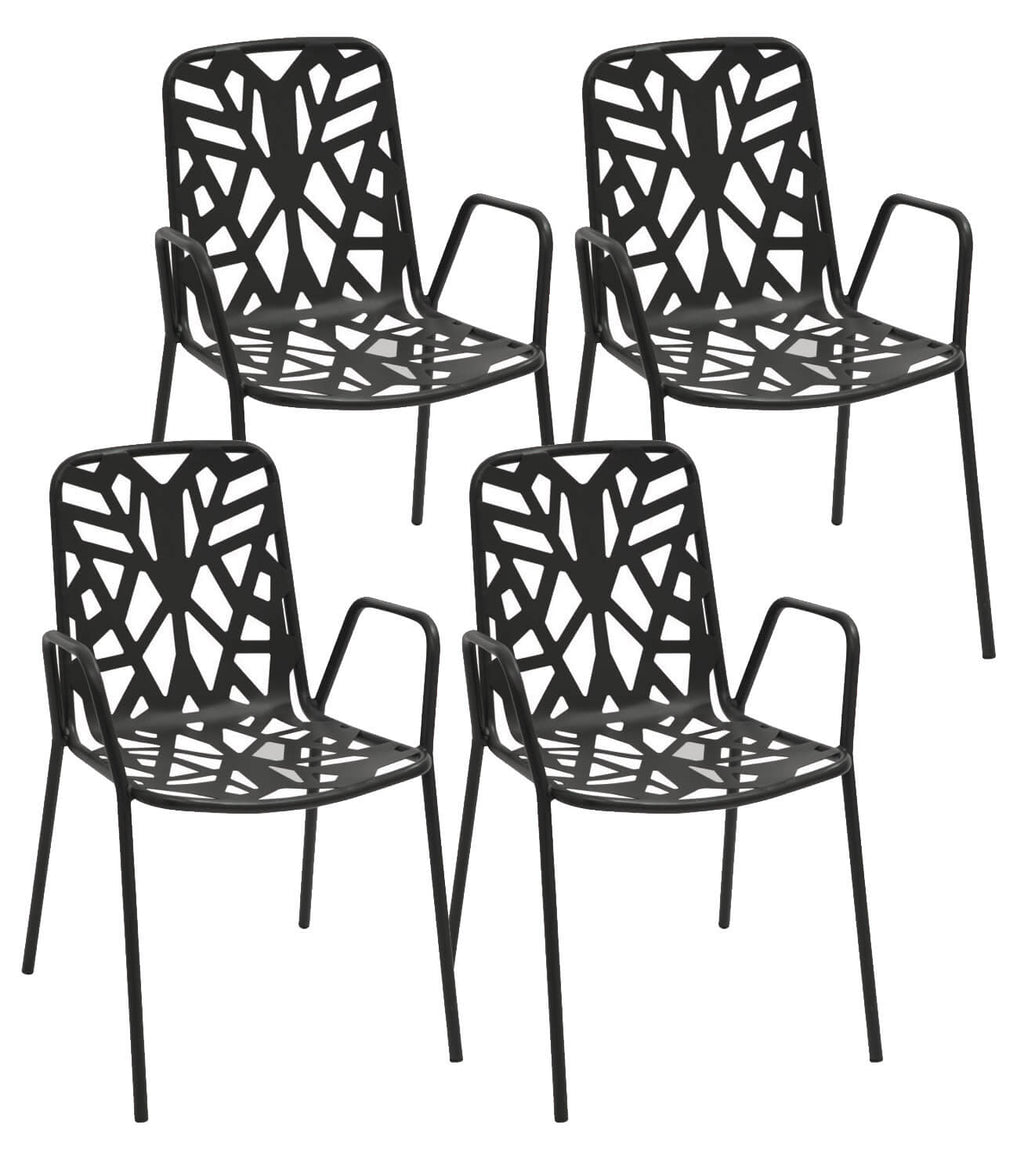 Lot de 4 chaises de jardin 53x59x83 cm en acier avec accoudoirs RD Italia Fancy Anthracite