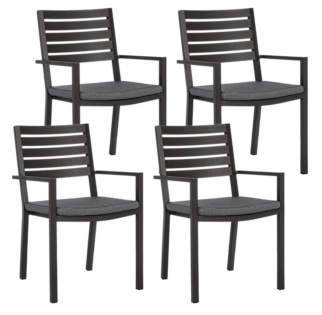 Set 4 Sedie da Giardino 55x56,5x86,5h cm con Braccioli e Cuscini Helina Antracite